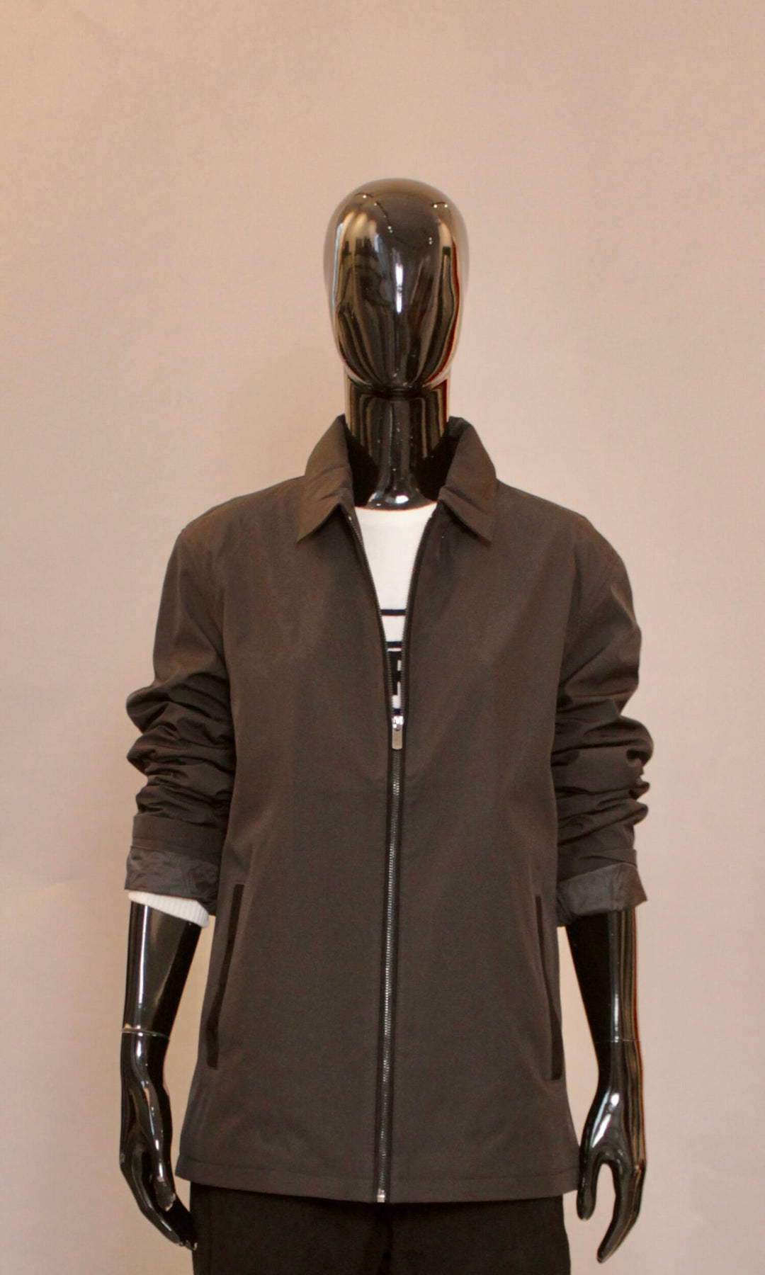 Glidelåslukkingen gir et minimalistisk preg, mens lommer med magnetlukking og to praktiske innerlommer tilfører både funksjonalitet og komfort i bruk. Diskrete skinn-detaljer på lommer og krage gir en subtil kontrast og fremhever merkets signatur for raffinerte materialvalg.