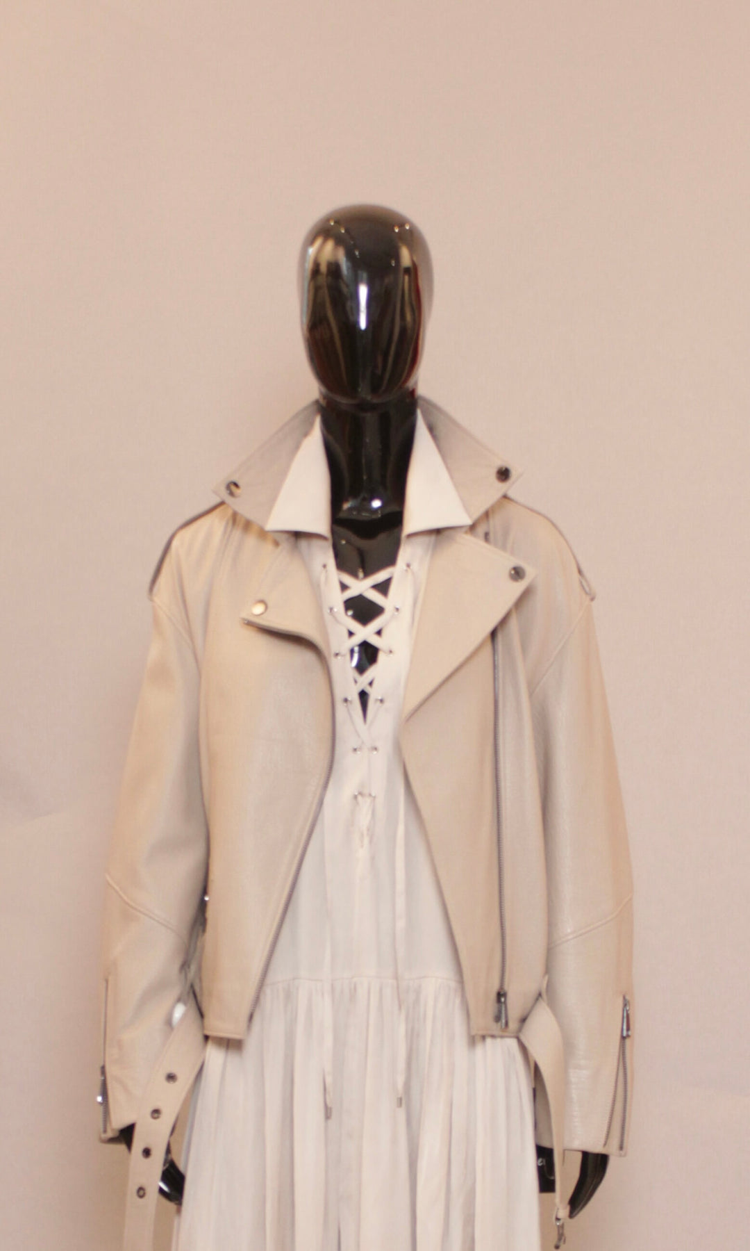 • "Biker" kort - glidelås lukking -  glidelås detaljer - rett i siluetten - spensel med beltespenne rundt livet - lengde ca 52 cm